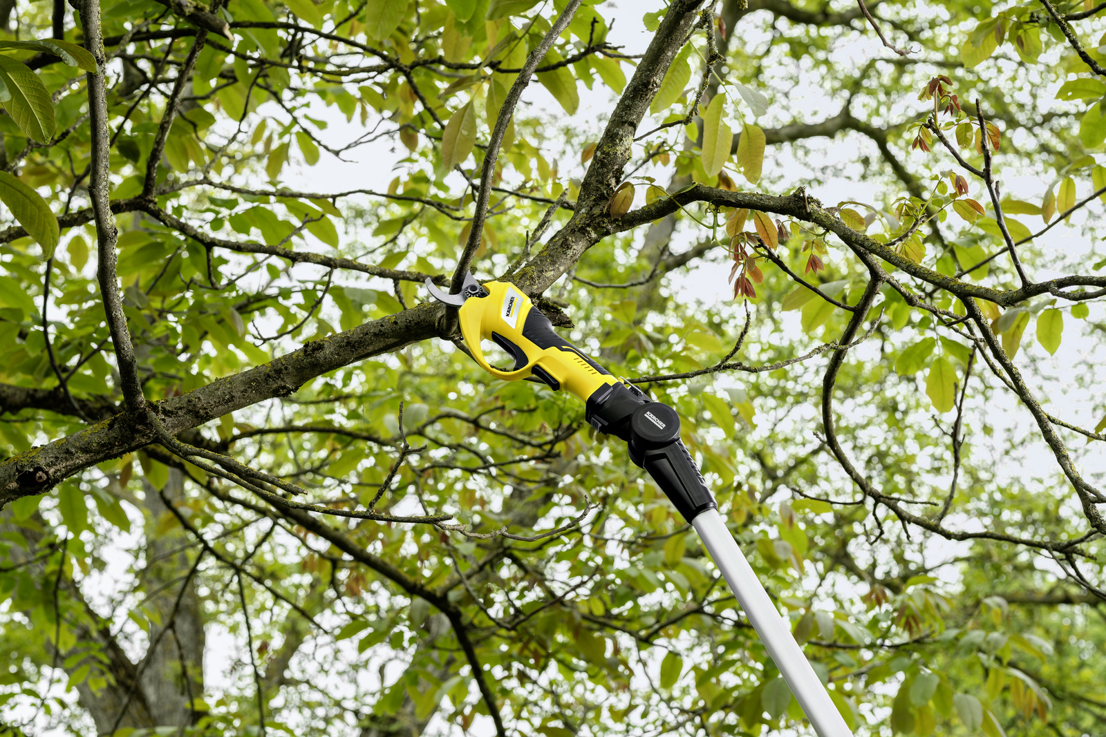 Einfache Baumpflege mit Akkukraft – Äste und Zweige mit einem Durchmesser von bis zu 2,5 Zentimetern sind für die Kärcher Akku-Astschere kein Problem. Dank ihrer kraftvollen Bypassklinge wird besonders präzise und ohne Kraftaufwand geschnitten. Der schonende Schnitt fördert zudem ein gesundes Pflanzenwachstum. Das Schneiden und Ausästen von Bäumen und auch der Rückschnitt von Gehölzen werden damit leichter und sicherer. Bequemes Überkopf-Arbeiten: Mit der optionalen Teleskopverlängerung (nicht im Lieferumfang enthalten) gelingt zudem das Arbeiten in einer Höhe von bis zu 3,5 Metern mühelos und komfortabel.