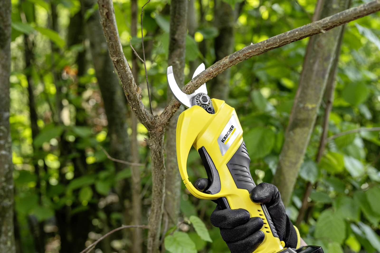 Astschnitt auf Knopfdruck: Die Akku-Astschere mit ihrer hochwertigen Bypassklinge ermöglicht müheloses und schonendes Schneiden von Ästen mit einem Durchmesser von bis zu 2,5 cm.